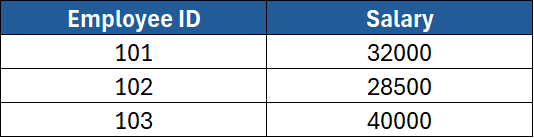 You want to combine the Salary column from Table 2 into Table 1, so each employee’s record includes their pay.
